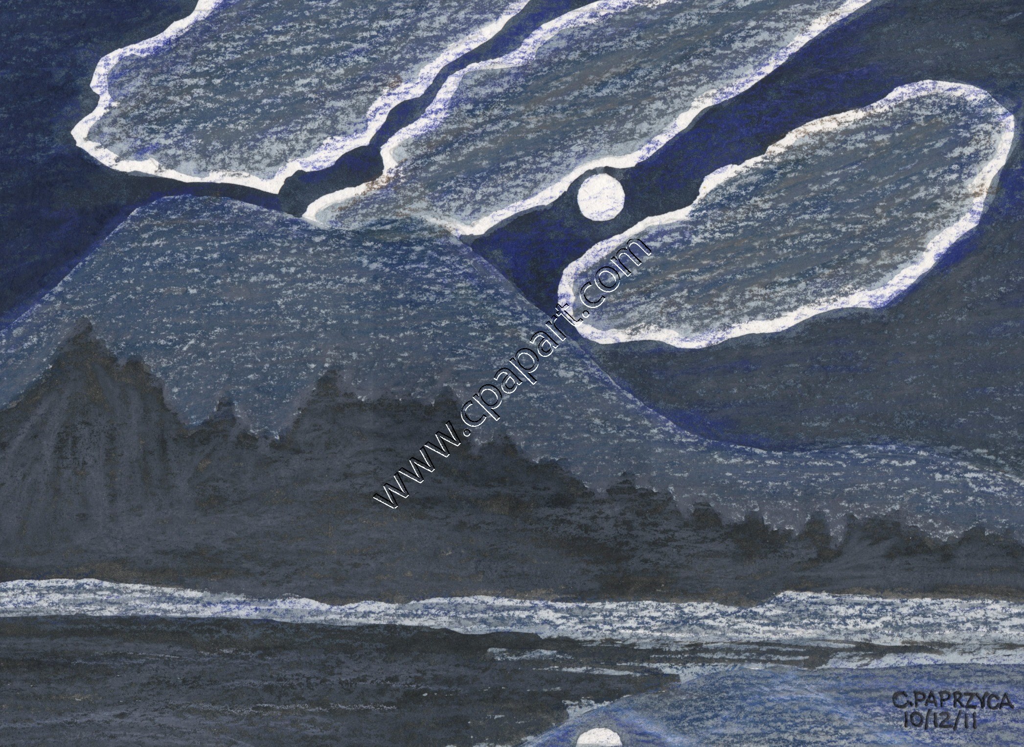 MOON OVER DAICEYOctober 2011Watercolor/Colored Pencil on Paper5" x 7"