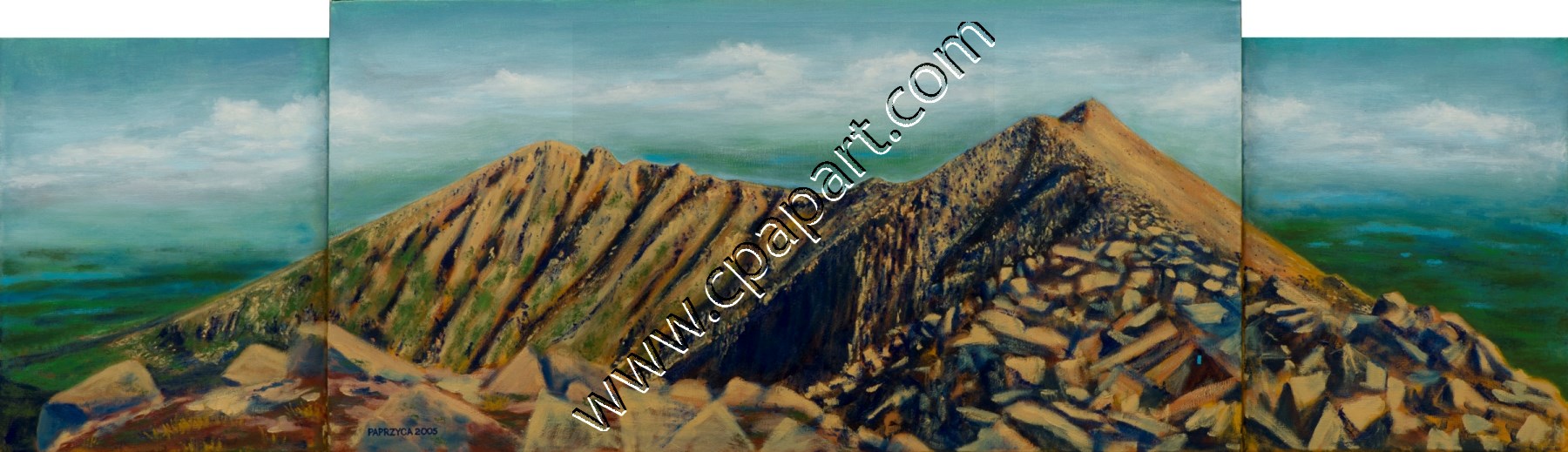 Giclee Paper Print - $40. (image area approx. 6" x 21") Giclee Stretched Canvas - $410. (3 panels) Contact Artist Original - $900. (with 1/2" wide unfinished wood trim frame) Contact Artist